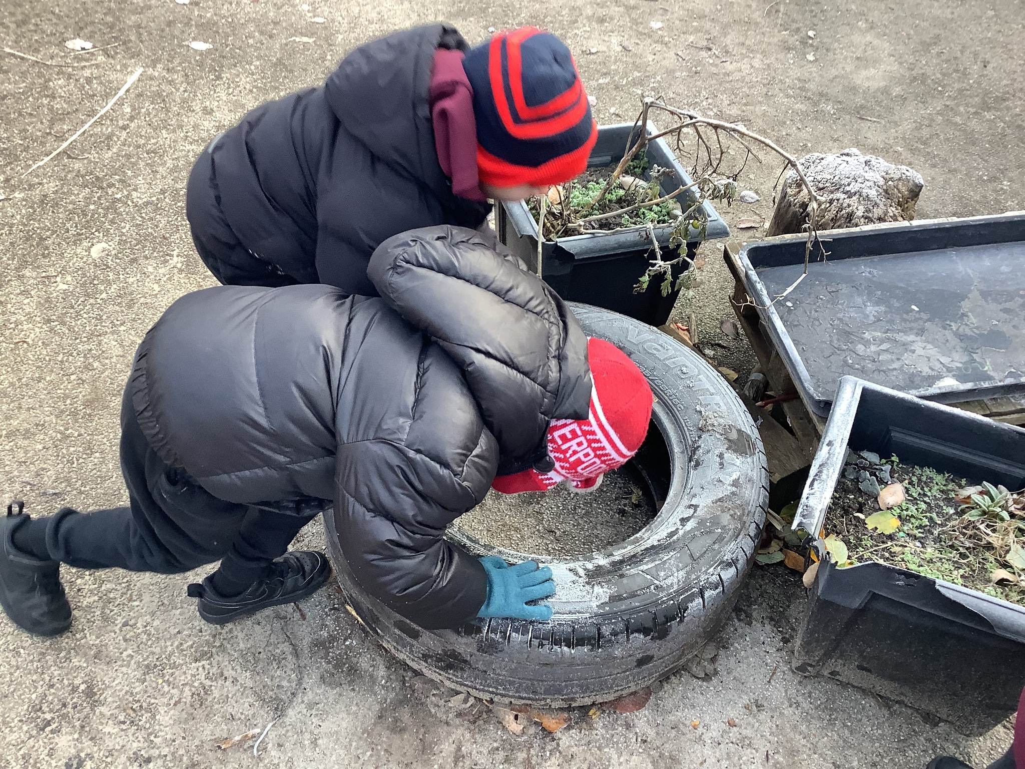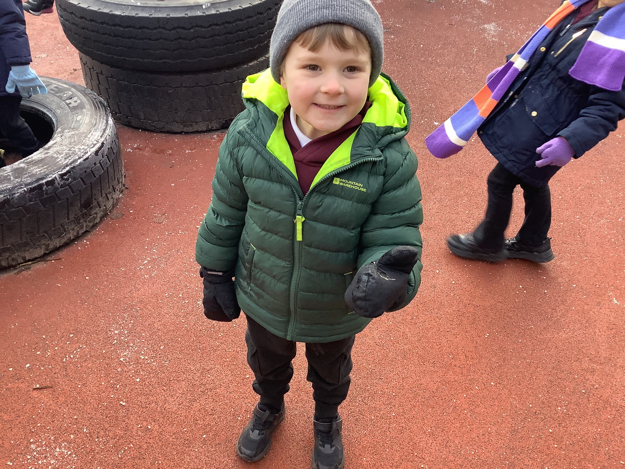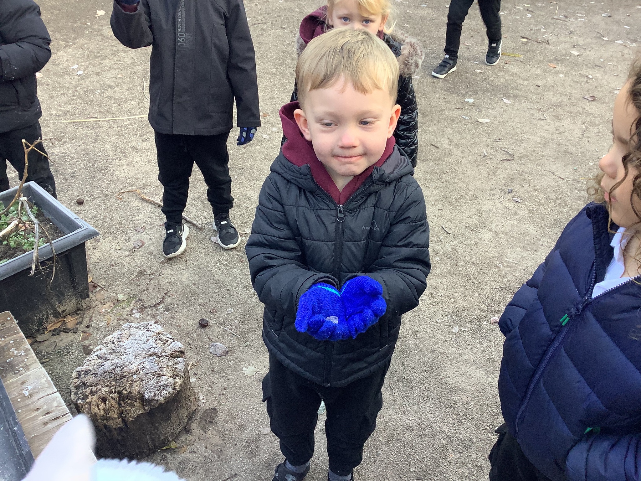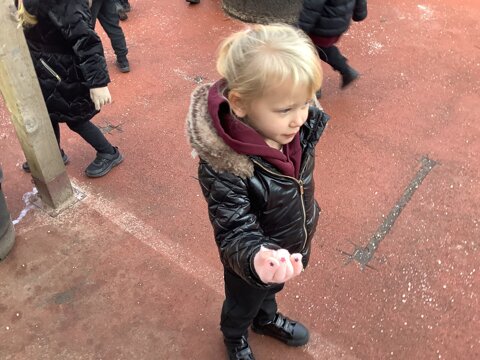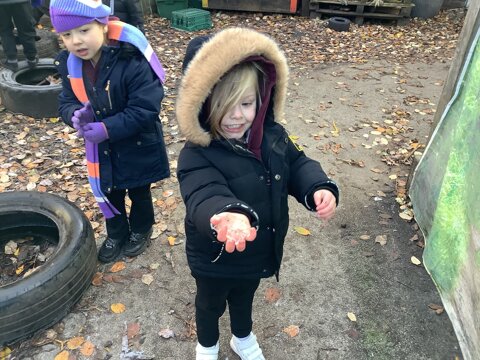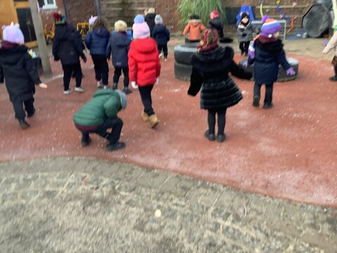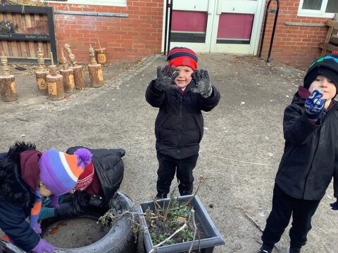 Last week we wrapped up warm and made the most of the cold weather. We talked about what changes had happened from Autumn to Winter. We also went looking for signs of the cold.