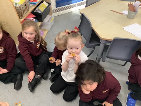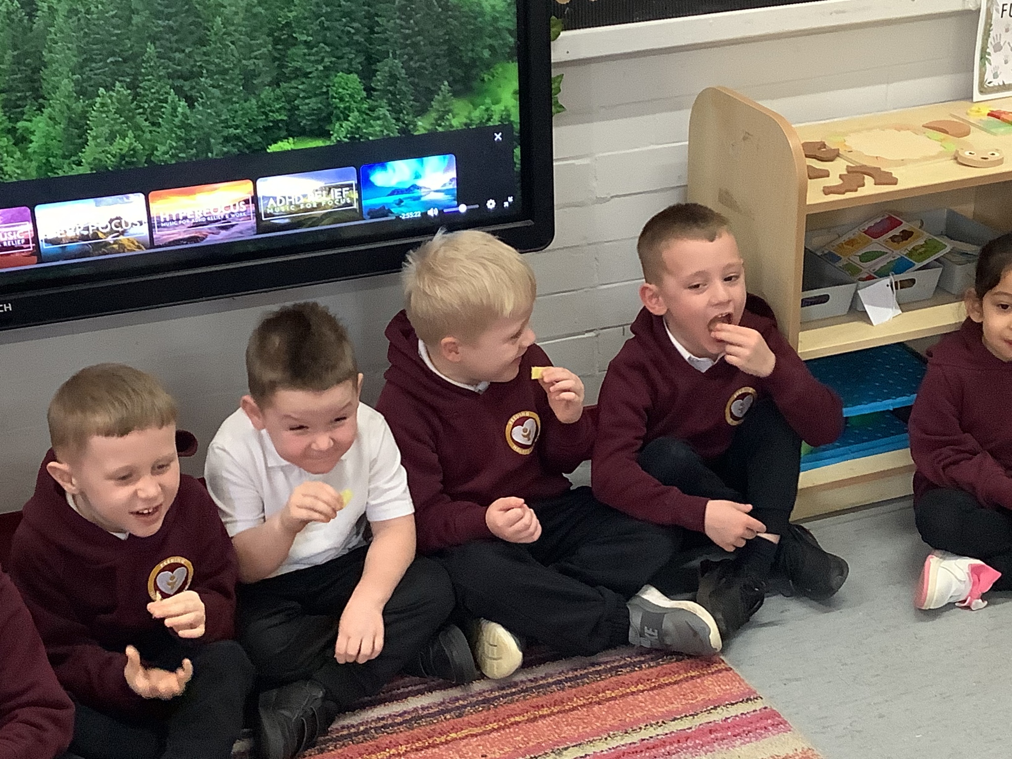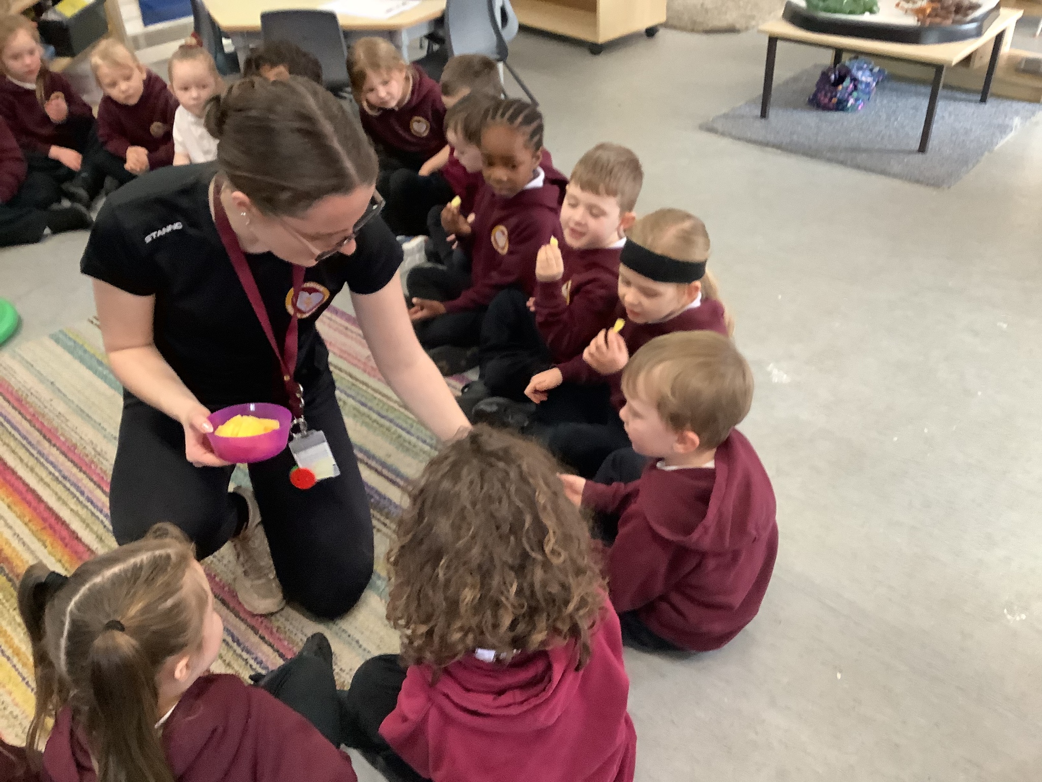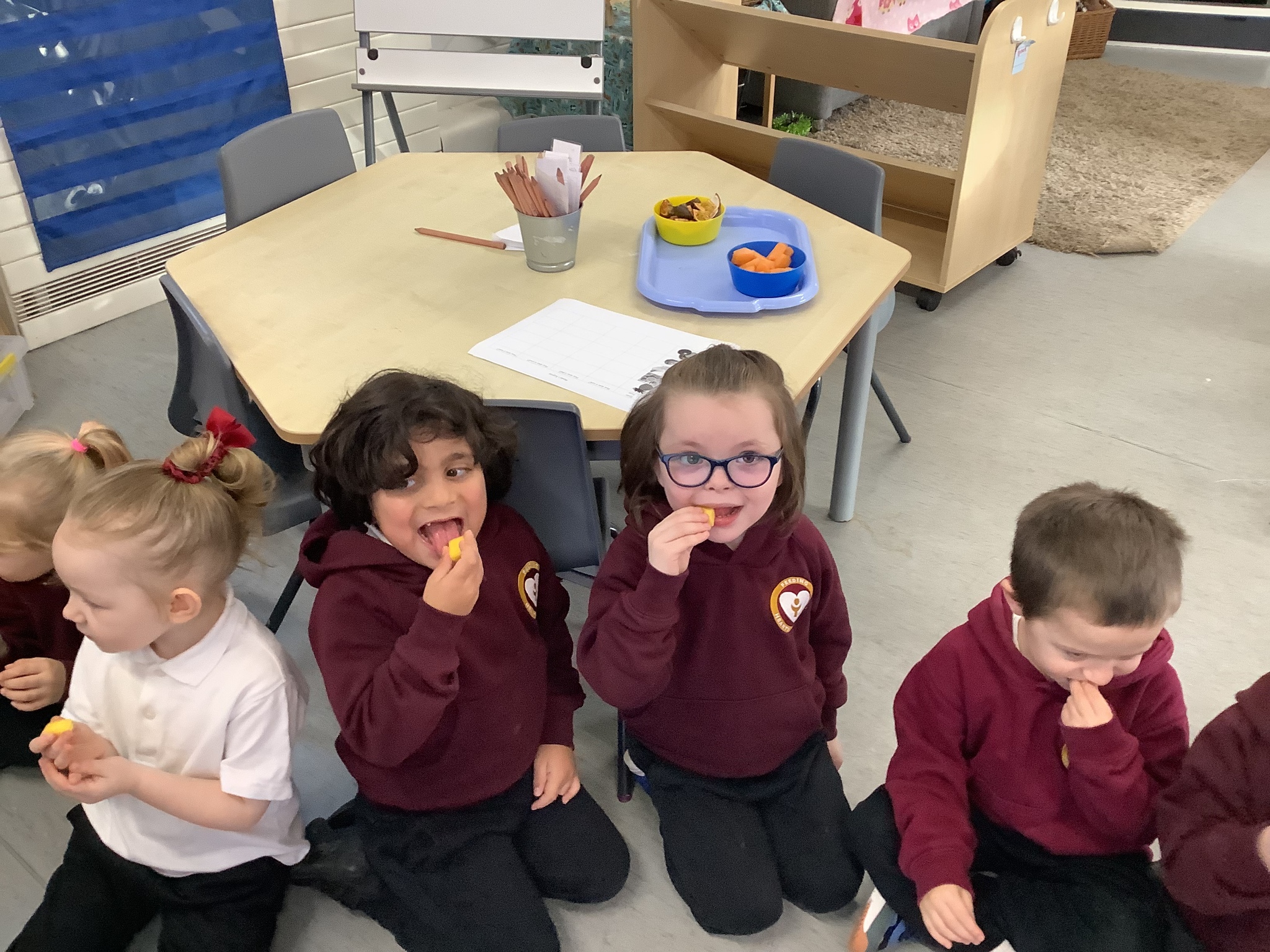 This week, Reception have been reading Handa’s Surprise. We wanted to try the fruits that Handa gave to her friend in the story. The children thought about how the different fruit tasted, how it looked, what it felt like and how it smelt. The children really enjoyed trying the different fruits.